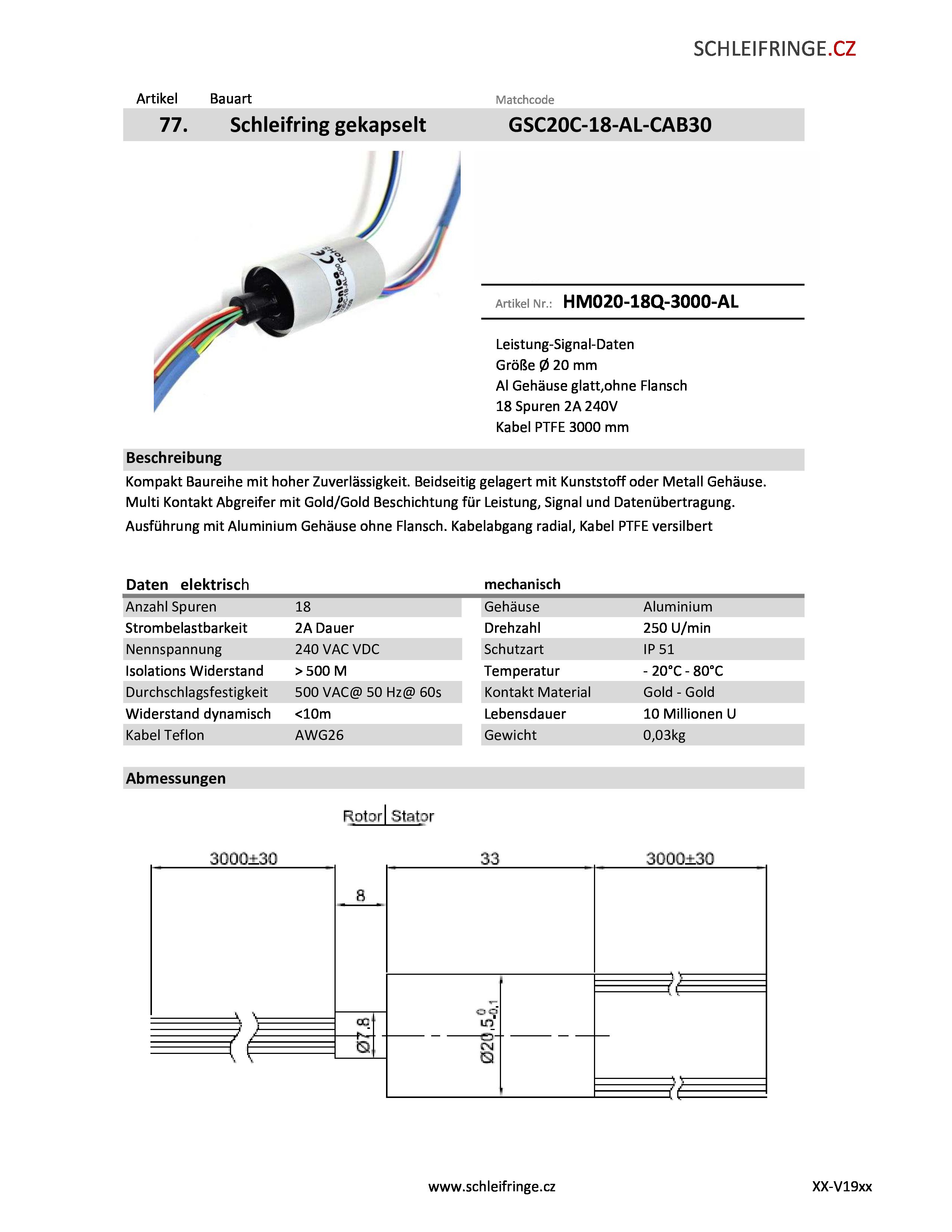 Schleifring HM020-18Q-3000-AL___GSC20C-18-AL-CAB30 Datenblatt